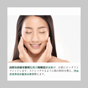 | 商品説明 | 高度な三層構造ジェルがフェイスラインを整え、就寝中にお肌をケア。潤い成分が敏感に傾いたお肌を優しく包み込み、翌朝のスキンケアの浸透※をサポートし健やかな素肌へ導きます。 ※角質層までお肌をストレッチ 高度な技術を駆使した三層構造ジェルがお肌にピッタリとフィット。 ストレッチするように肌の形状を整え、フェイスラインをすっきり整えます。 睡眠中にジェルがお肌を整える 敏感肌ケアができる |